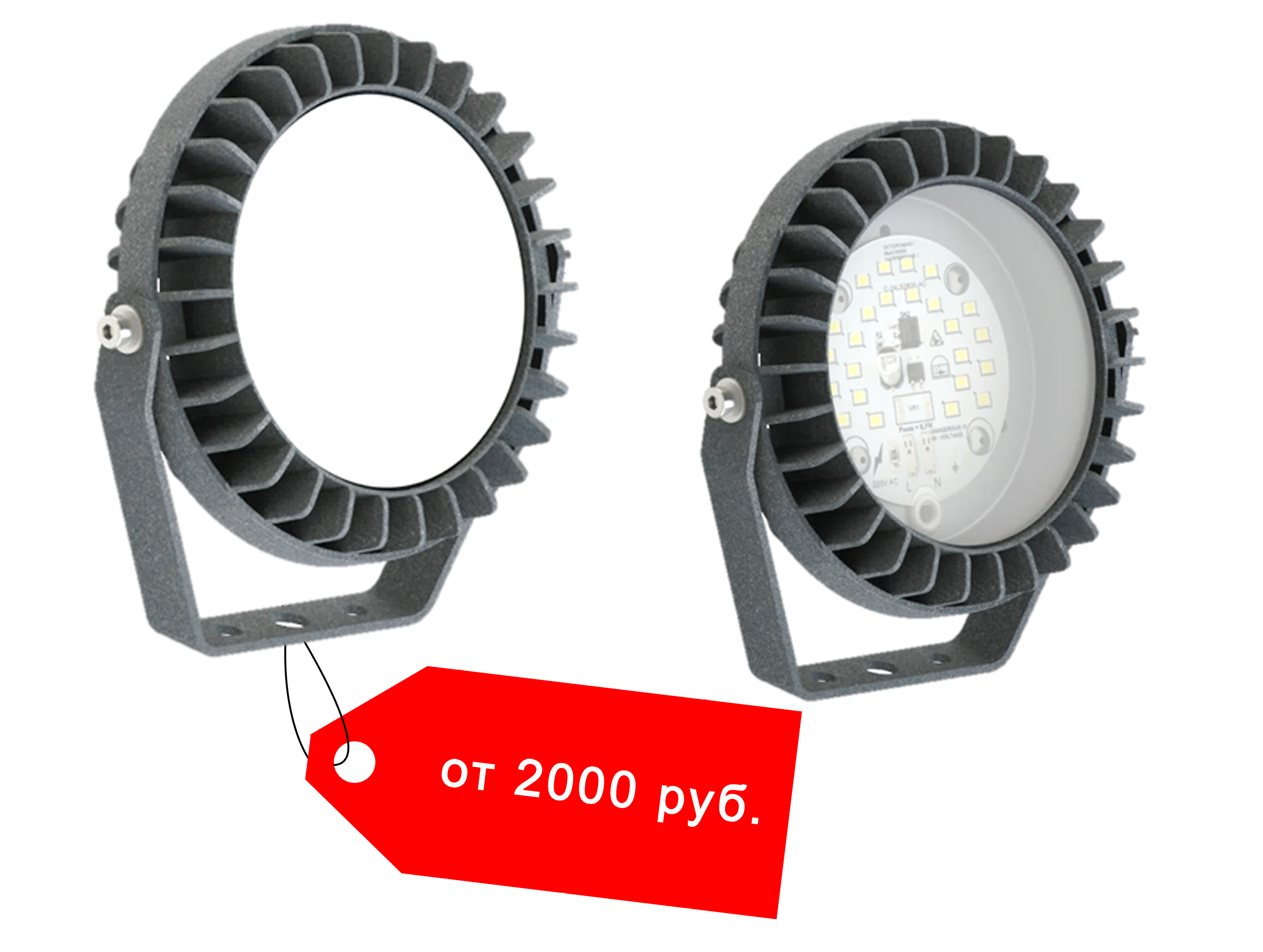Прожектор для уличного освещения, имеет поворотный кронштейн. Прожектор предназначен для подсветки фасадов, рекламных конструкций, деревьев, скульптур и других объектов ландшафтного дизайна. Материал корпуса прибора — алюминий, окрашенный в матовый серый цвет, есть возможность окраски в любой цвет. Материал рассеивателя – поликарбонат (прозрачный, матовый белый) Благодаря полной защите корпуса от воды и пыли IP65 модель подходит как для внешнего, так и для внутреннего использования в любых помещениях. Прожектор оснащен встроенными светодиодами SMD, которые дают нейтральный белый свет. Прибор подключается к бытовой электросети с напряжением 220-240 В.