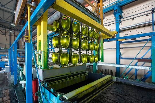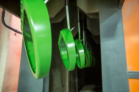 В линии имеются 9 ванн подготовки поверхности, основные ванны: №1 – предварительное обезжиривание; №2 – щелочное обезжиривание; №5 – фосфатное покрытие; №8 – пассивация шести валентным хромом. Контроль показателей ванн ежедневно контролируется испытательной лабораторией и оператором ванн. Данный метод позволяет подготавливать разный тип металла к порошковому окрашиванию, создавая защитный слой на поверхности детали, что способствует долголетию и эксплуатации.
