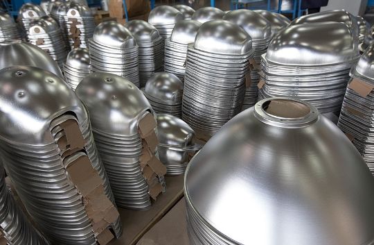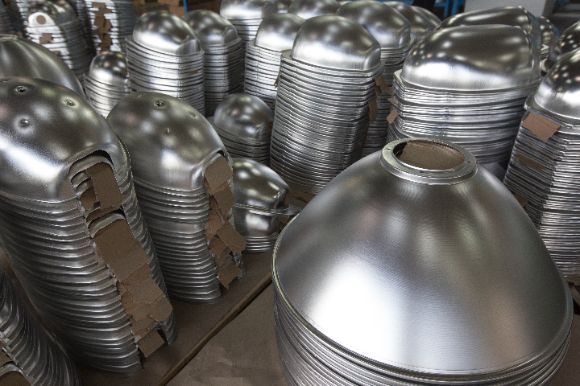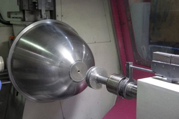 Ротационная вытяжка, осуществляемая на станке Giotto 600, используется для изготовления круглосимметричных форм, а для изготовления всех остальных форм используется вытяжка холодным давлением (формовка).